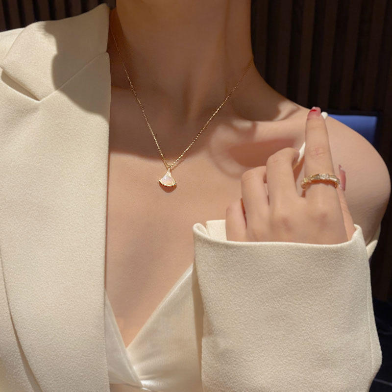 Nuova Collana con Ciondolo a Forma di Conchiglia, Raffinata Collana in Acciaio al Titanio Placcato Oro 18K con Occhi di Gatto per Donne