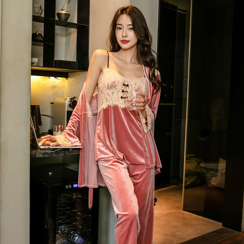 New Arrival Solid Color Velvet Plus Size Sleepwear Couple Pajamas Sets Sleeping Dress Sexy Night