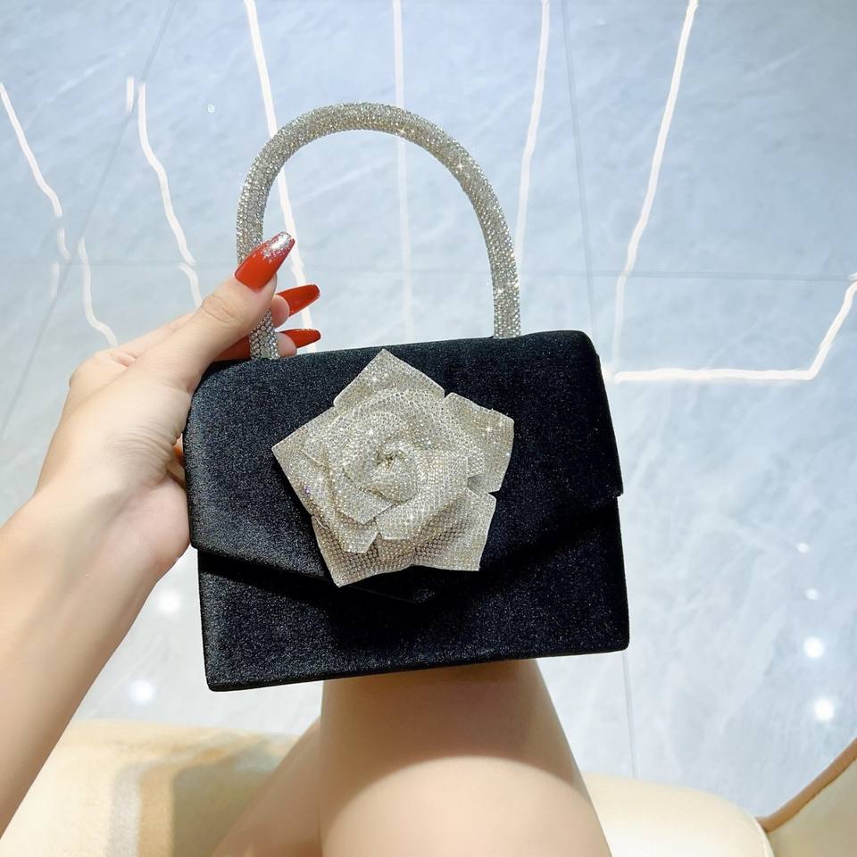 New Arrival Trendy Satin Crossbody Women Handbag With Big Bling Crystal Flowerlady Fantastic Evening Party Bag Purse