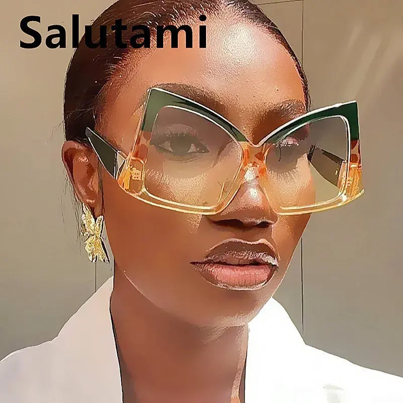 Nuovi Occhiali da Sole Oversize a Occhio di Gatto con Fiocco Unico, Lenti Sfumate, Stile Farfalla Leggero, Arancione Bianco Verde Rosso