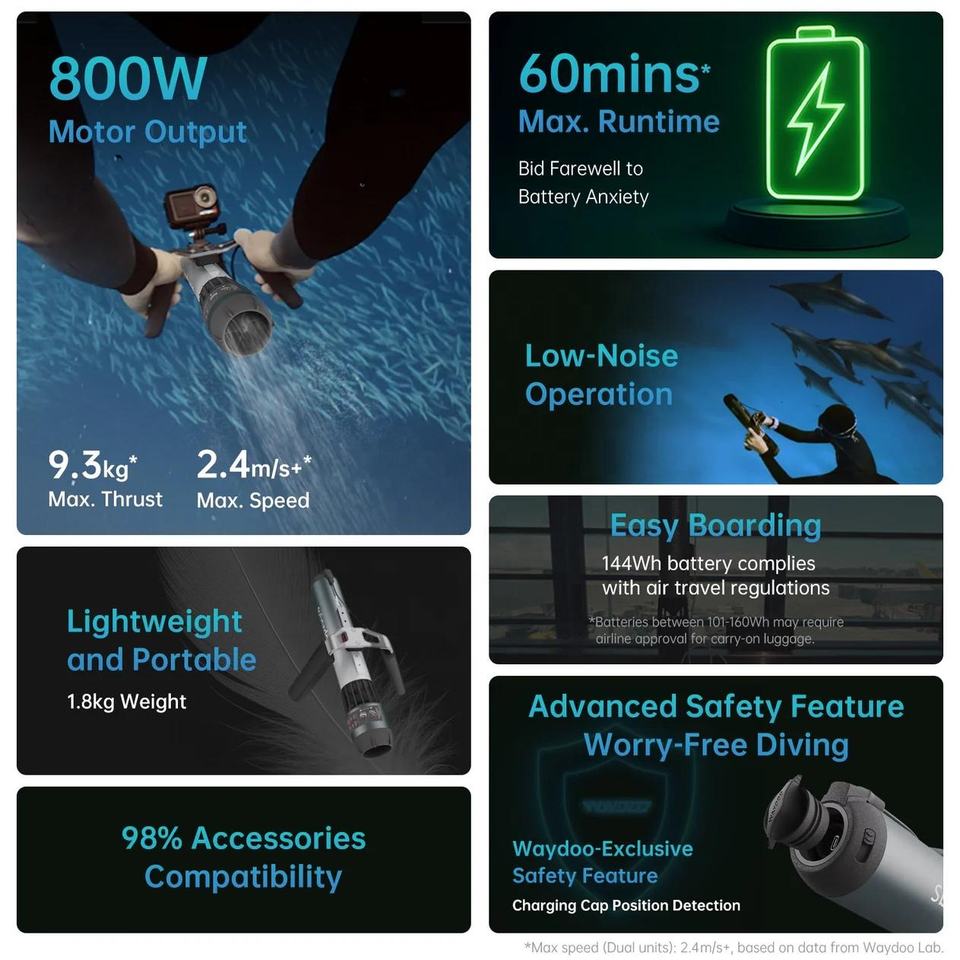 Nuovo Arrivo Scooter Subacqueo Waydoo Subnado da 800W Plus con 60 Minuti di Autonomia, Scooter Marino da 144Wh, Regali di Natale