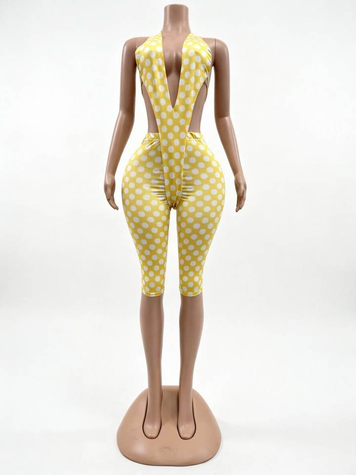 Novità Estate 2026: Completo Due Pezzi da Donna Y2K con Top Halter Senza Schienale Elasticizzato Senza Maniche Sexy da Club e Pantaloncini Aderenti con Stampa a Pois