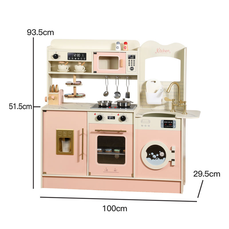 Nuovo Arrivo Cucina Giocattolo in Legno per Bambini e Bambine con Lavatrice, Set Cucina Gioco per Età 3+