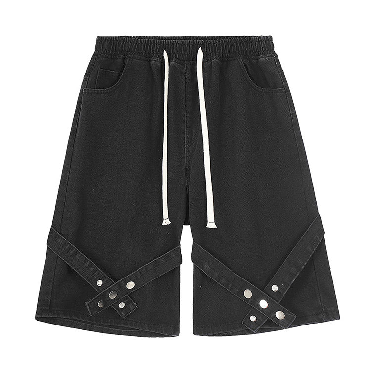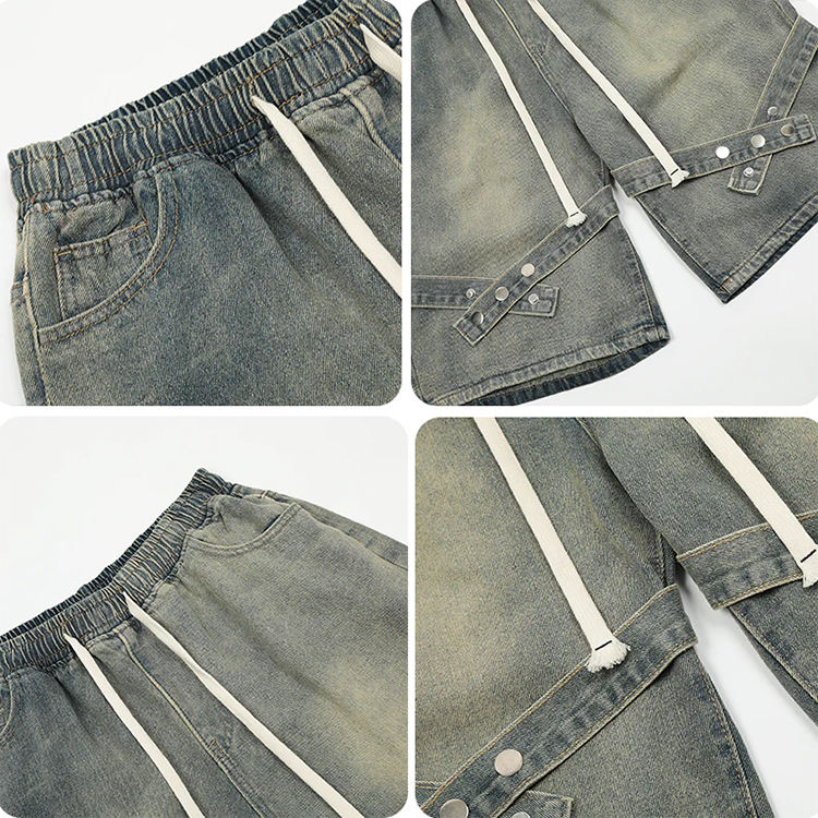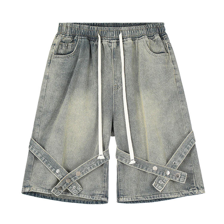 Nuovi arrivi pantaloncini di Jeans da uomo con coulisse di design alla moda con cintura a bottoni pantaloncini larghi in Denim da uomo retrò Casual pantaloncini da uomo