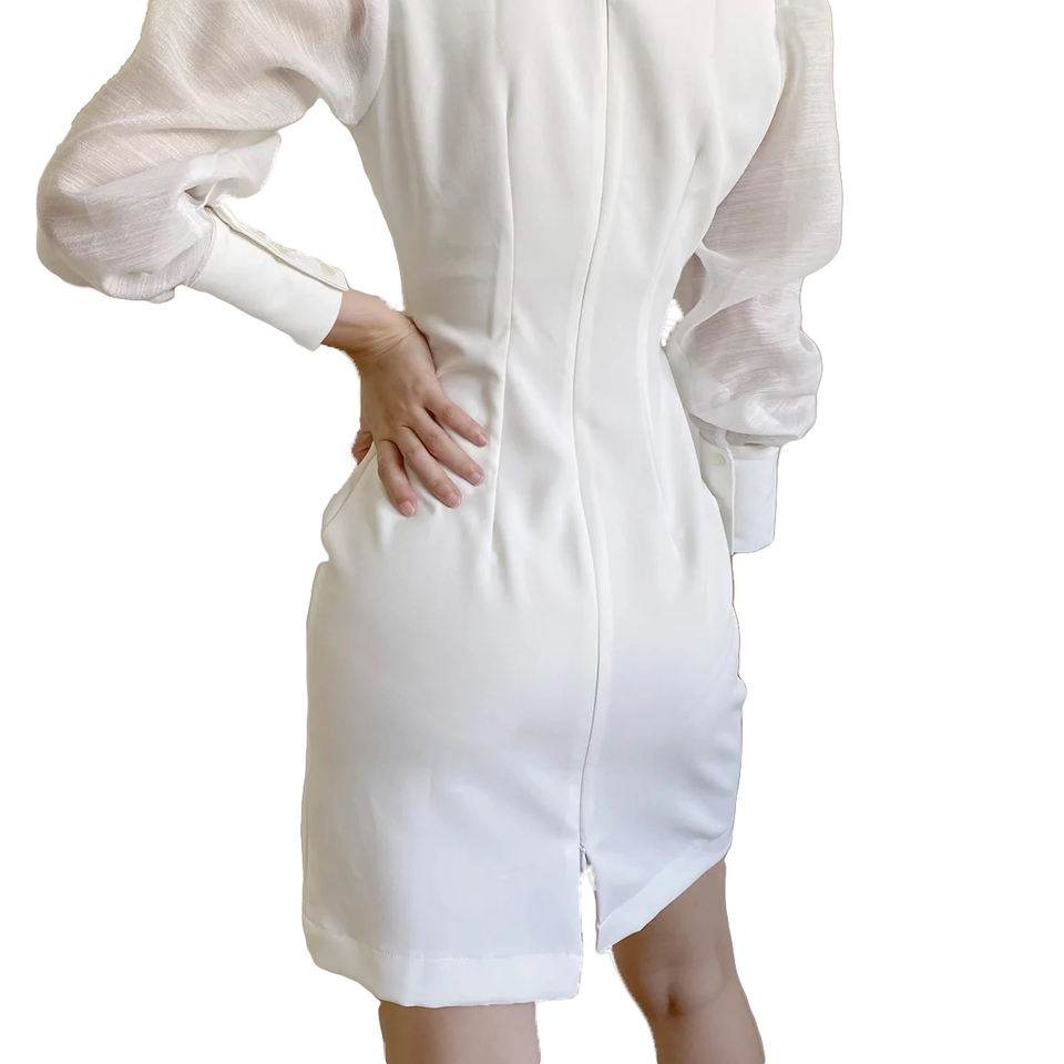 Nuovi Arrivi: Elegante Abito Estivo Bianco a Maniche Lunghe con Spacco Frontale, Cerniere, Vita Naturale, Tessuto Lavabile, Mini