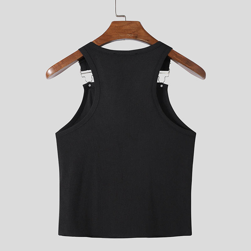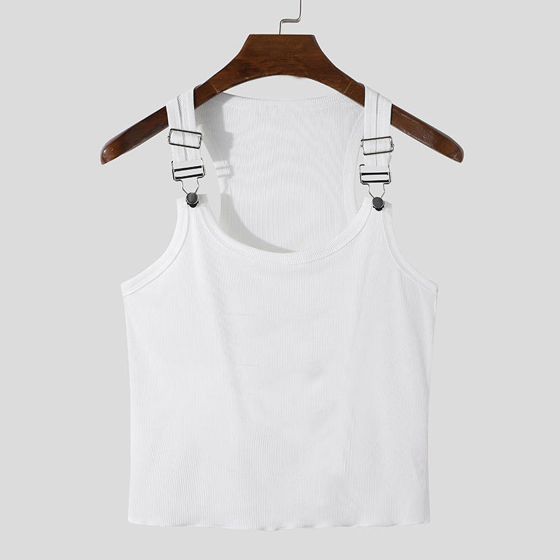Nuovi arrivi Top corto da uomo con cinturino con fibbia alla moda Sexy in cotone da palestra canotta a coste estive Hot vendita camicie Casual Hip Hop