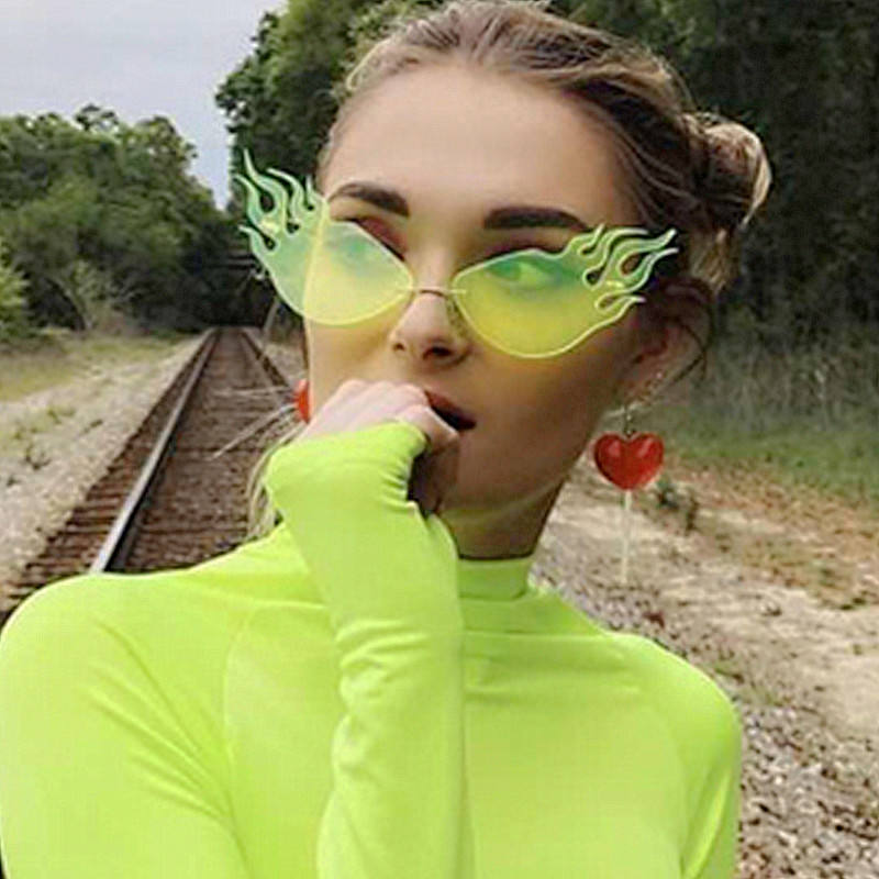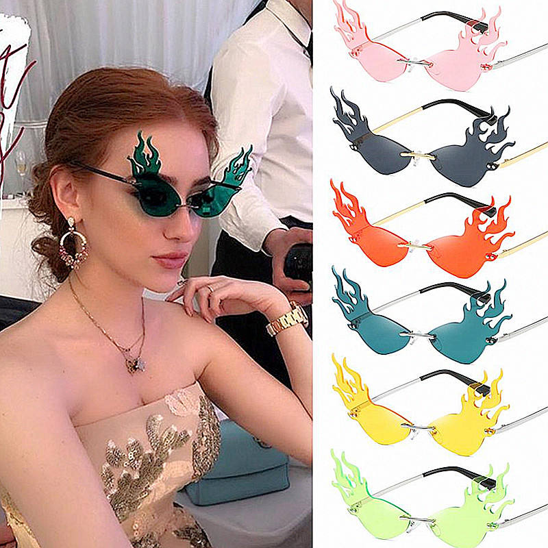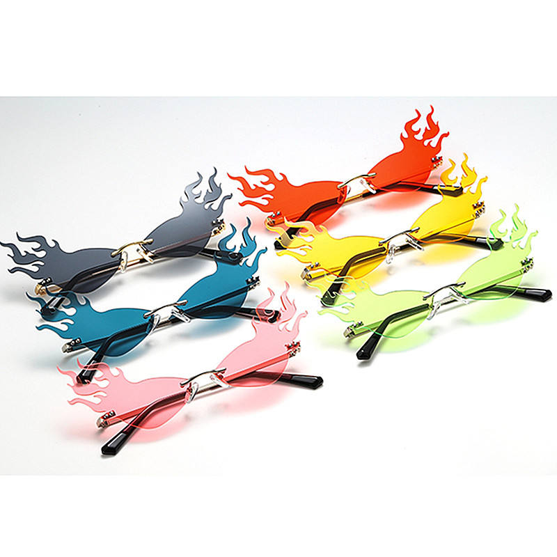 New Arrivals Unisex Women Men Party Glasses Hollow Cat Eye Sunglasses UV400 Rimless Fire Shape Flame Sunglasses Women