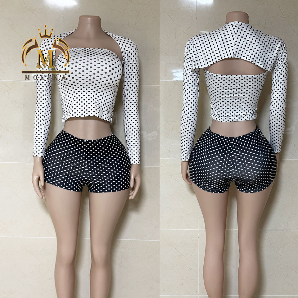 New Arrivals Women's Clothing Polka Dot Print Long Sleeve +vest+Shorts 3 Piece Set Casual Three Piece Set Women Clothing 2026