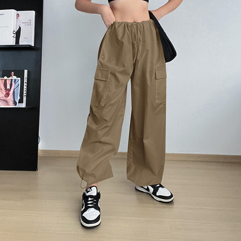 New Arrivals Y2k Clothes Harajuku Hippie Korean Fashion Women Pants Cargo Parachute Gray Elastic Waist High Waist Casual