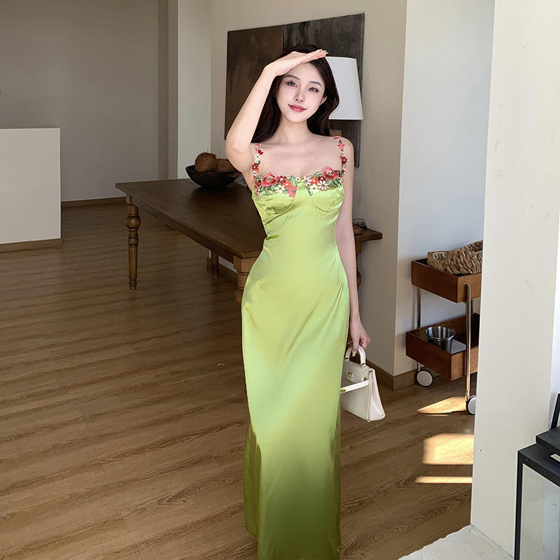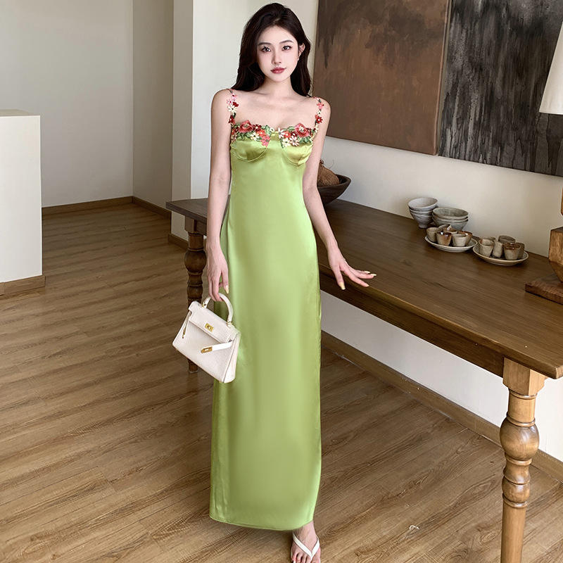 New Arrived Latest Design Girls Lace Sexy Sling Casual Long Slim Dresses Womens Clothing