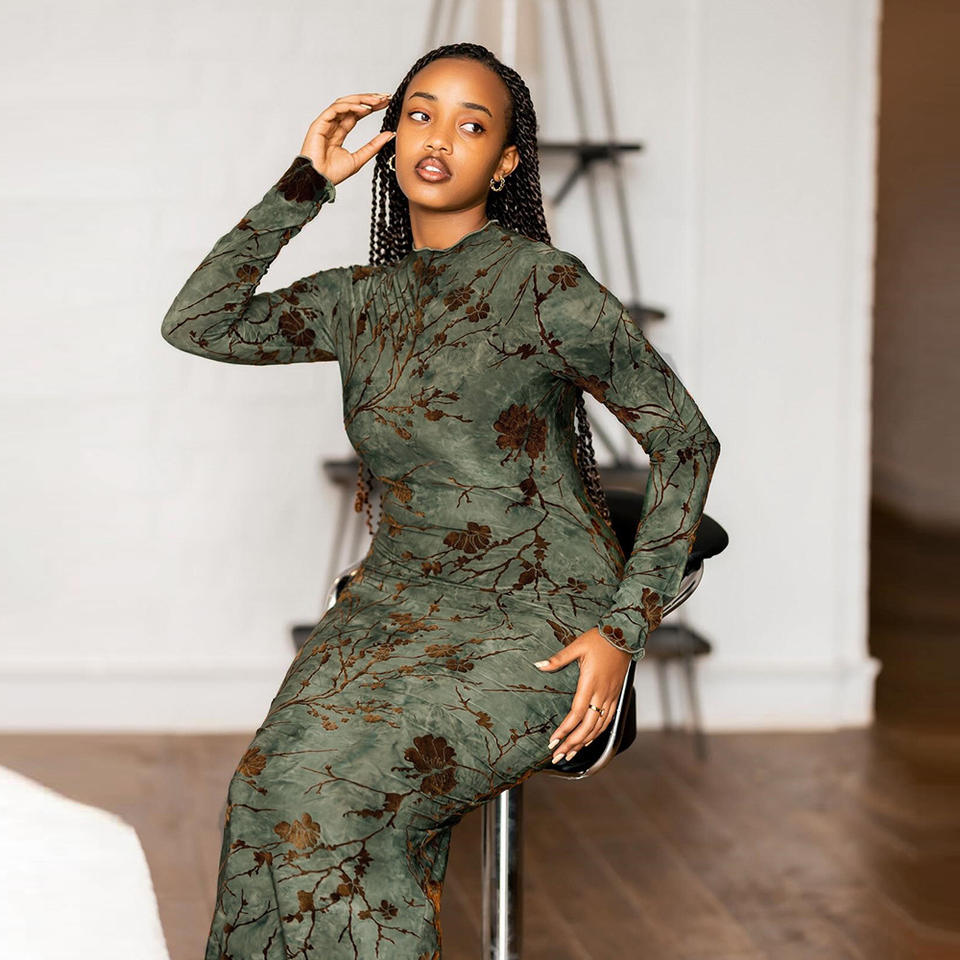 New Arrived Sexy Chinese Style Long Dress for Women Flocking Midi Fashion Dress Party Club Clothing Women's Elegant Dress