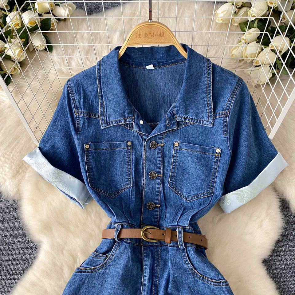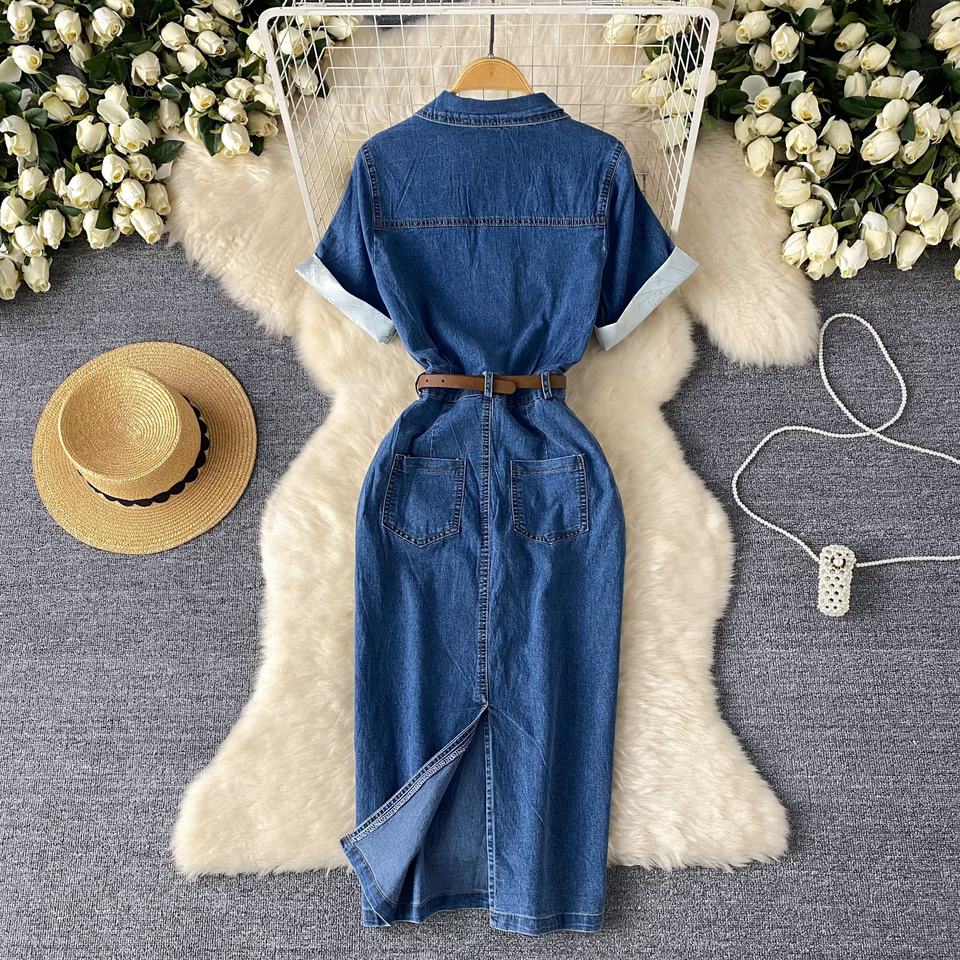 Nuova arrivata cintura estiva da donna con collo a Polo blu semplice Modulare abiti lunghi in Denim