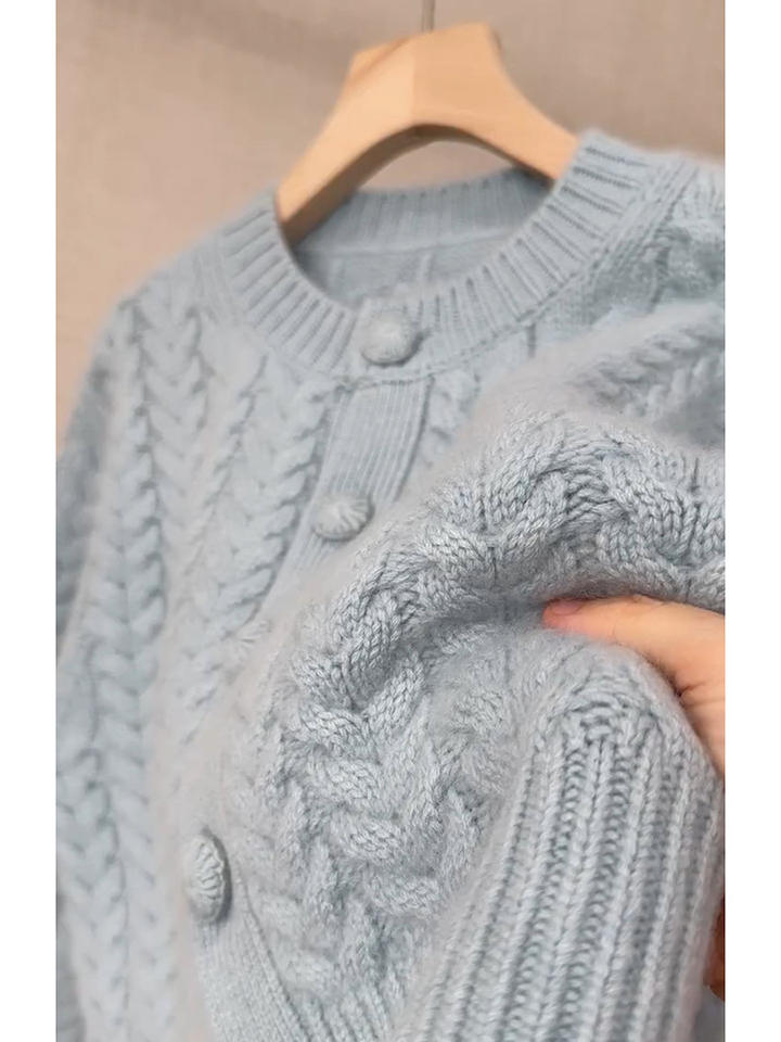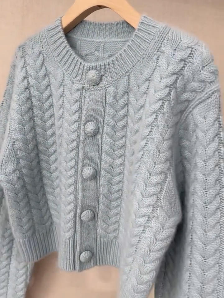New Autumn and Winter Cute Soft-Style Cable-Knit Blue Cardigan - a Soft, Slouchy Outerwear with Heavy-Duty Knitted Sweater Top