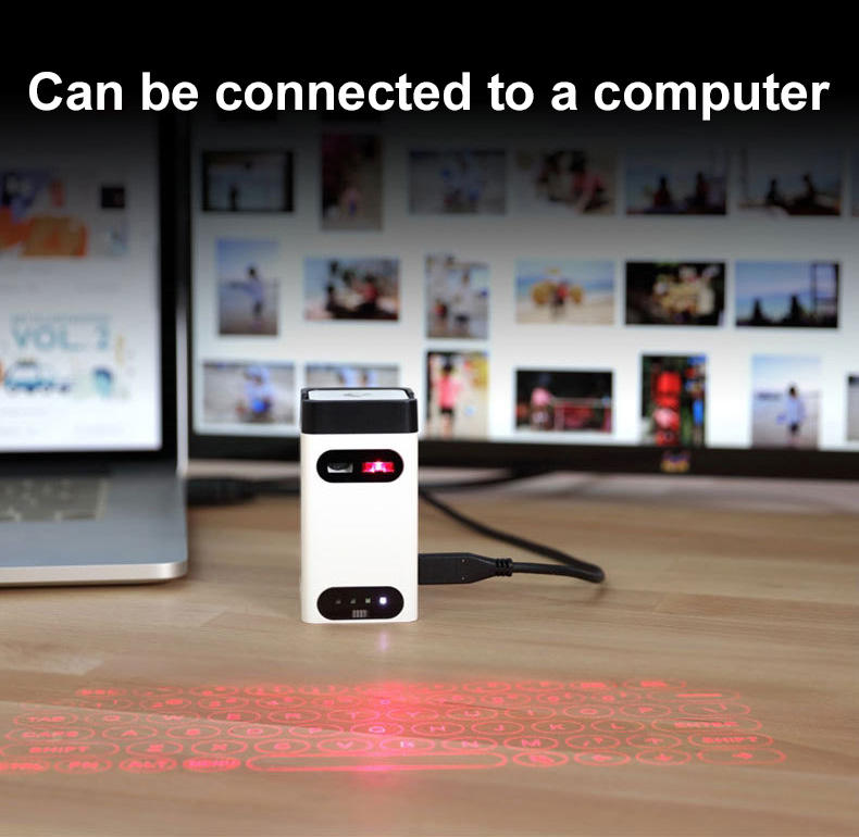 Nuova Mini Tastiera Laser Virtuale BT 2.4Ghz Wireless con Retroilluminazione LED Portatile per Computer, Smartphone e Mouse