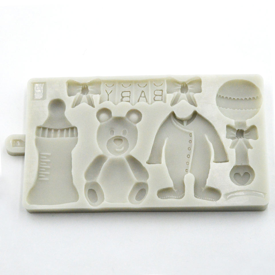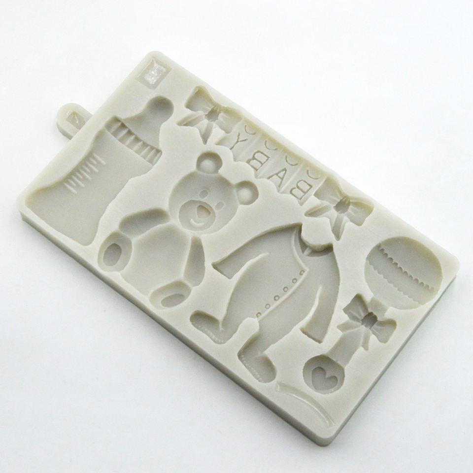 New Baby Bottle Bear Bear Happy Birthday Fondant Silicone Cake Mold Chocolate Mold Baking Tool