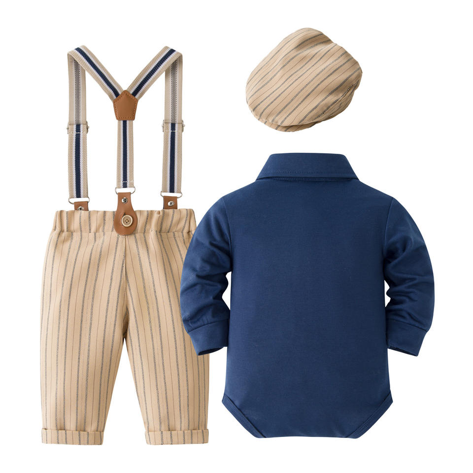 Nuovi Completi per Neonato Maschio, Abiti per Battesimo, Outfit per Cerimonia 0-24 Mesi, Tutina con Papillon e Pantaloni con Bretelle