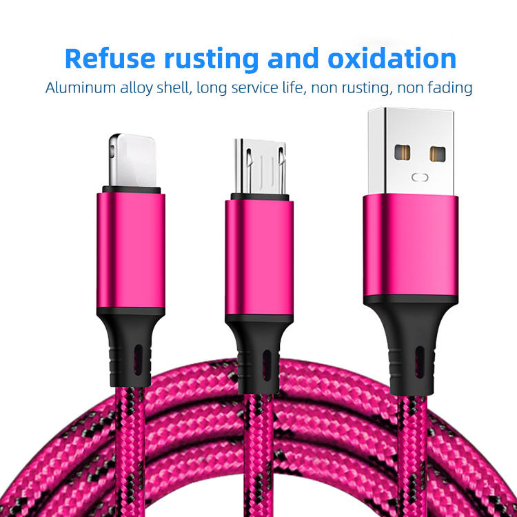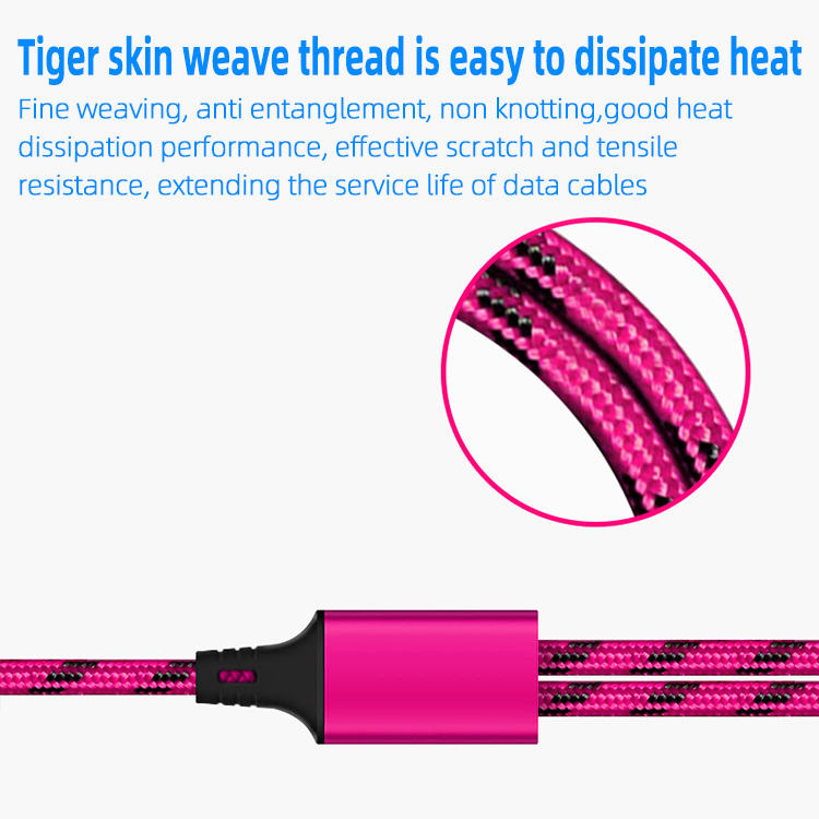 New Best-selling Tiger Nylon Leather Woven Charging Cable 2.4A 1To 2 Fast Charging Cable Suitable for Android and Phone