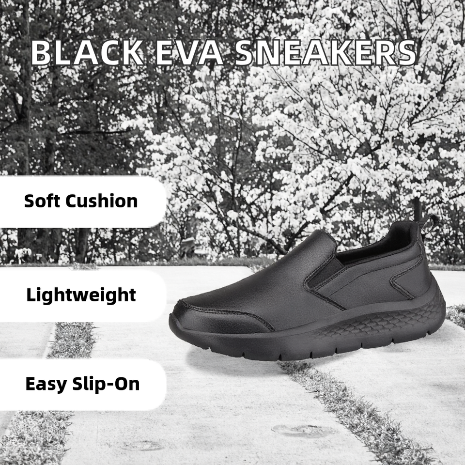 New Black EVA Sneakers Comfortable Lightweight Slip-On Skateboard Shoes Cushioning Memory Foam Mesh Lining Summer Spring Walking