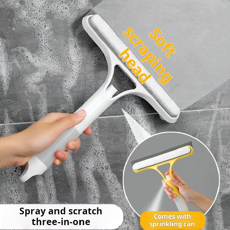 Nuovo Raschietto per Vetri Auto, Spugna Tergicristallo per Doccia e Finestre, Spatola con Bottiglia Spray, Detergente per Specchi da Bagno, Manico in Plastica Ecologico