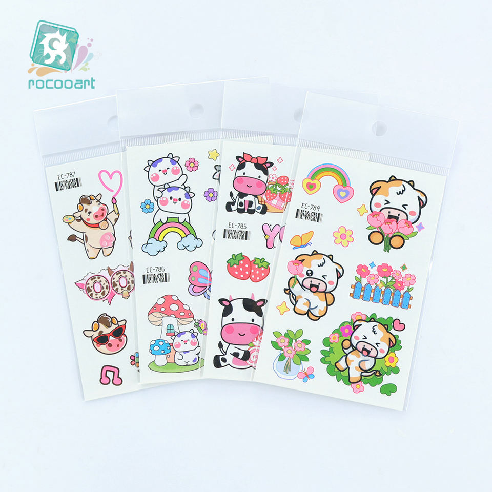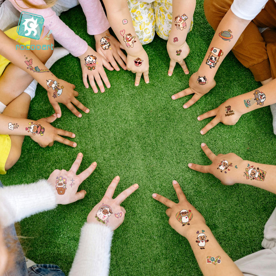 Nuovo corpo del fumetto del tatuaggio temporaneo della festa di compleanno del viso della scuola adesivo del tatuaggio con le pecore realistiche delle mucche per gli adesivi del tatuaggio dei bambini