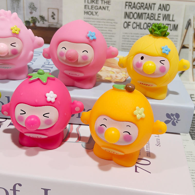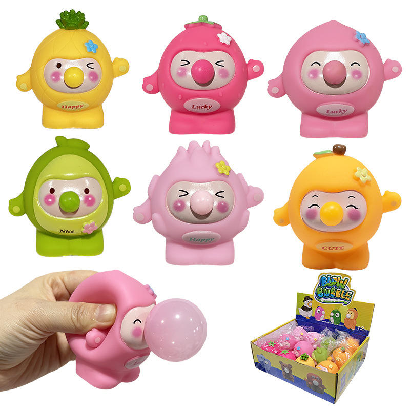 Nuovo Giocattolo Cartoon Vitality Little Round che Produce Bolle, Allevia lo Stress, Si Spremere e Giocare con, con Frutta e Uova, Divertente