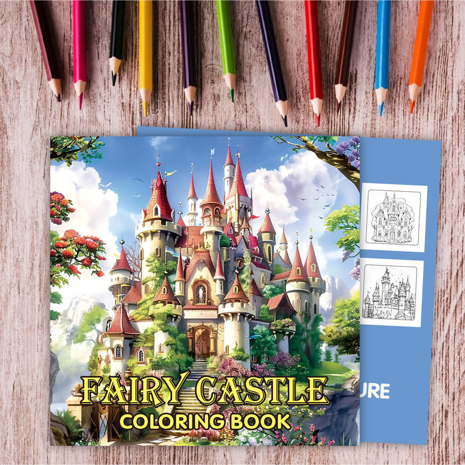 Nuovo Libro da Colorare per Adulti Castello nel Parco, 24 Illustrazioni Creative Graffiti ad Acquerello su Carta, Prodotto in Cina, Castello delle Fiabe