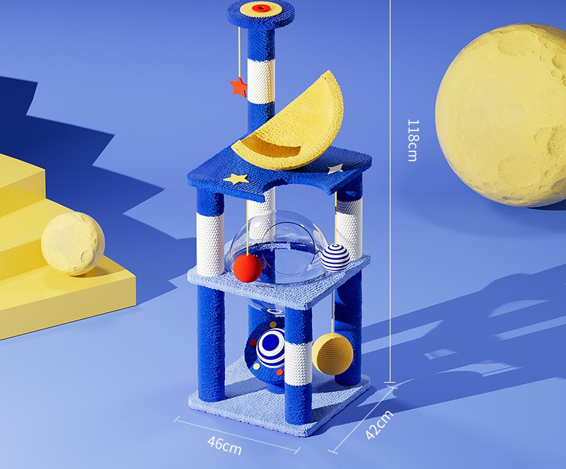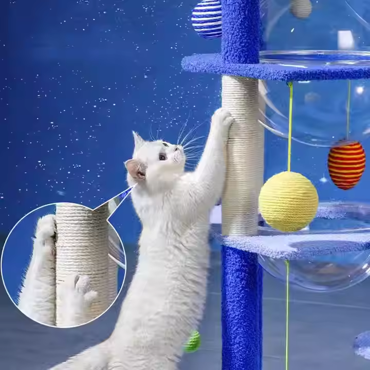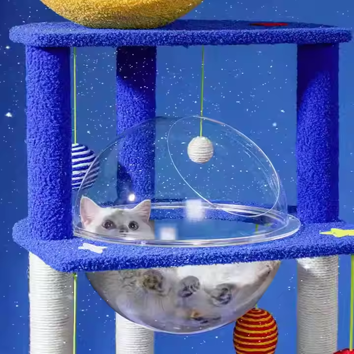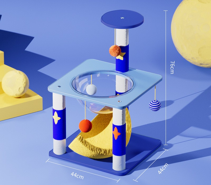New Cat Treehouse Cute Velvet Cat Tree with Toy Hanging Ball Scratching Board Poles for Cat Climbing Frame