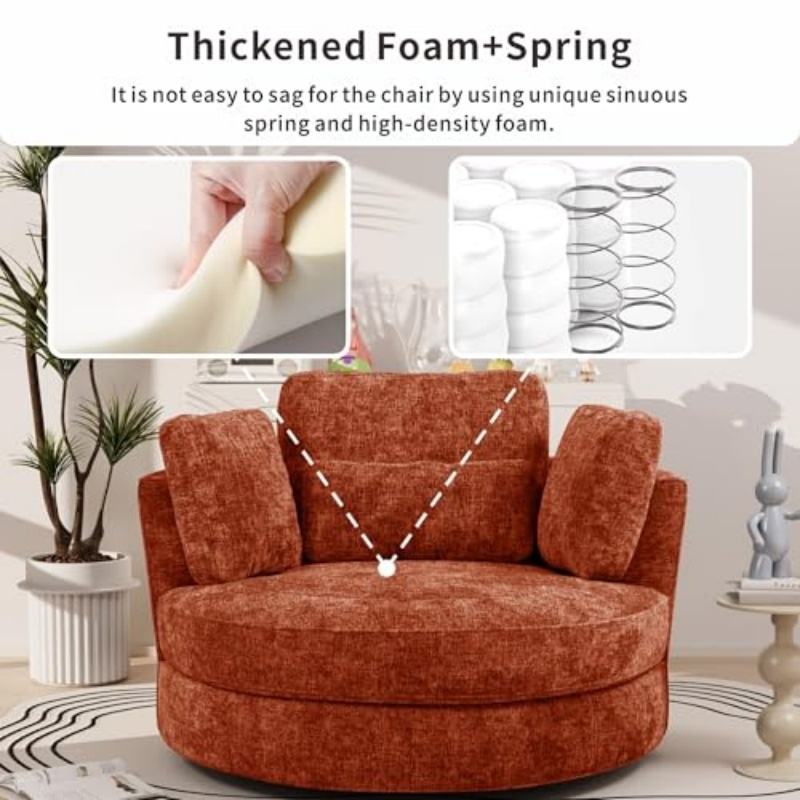 Nuova Poltrona Girevole in Ciniglia con Seduta Profonda, Grande Poltrona Rotonda Imbottita per Soggiorno