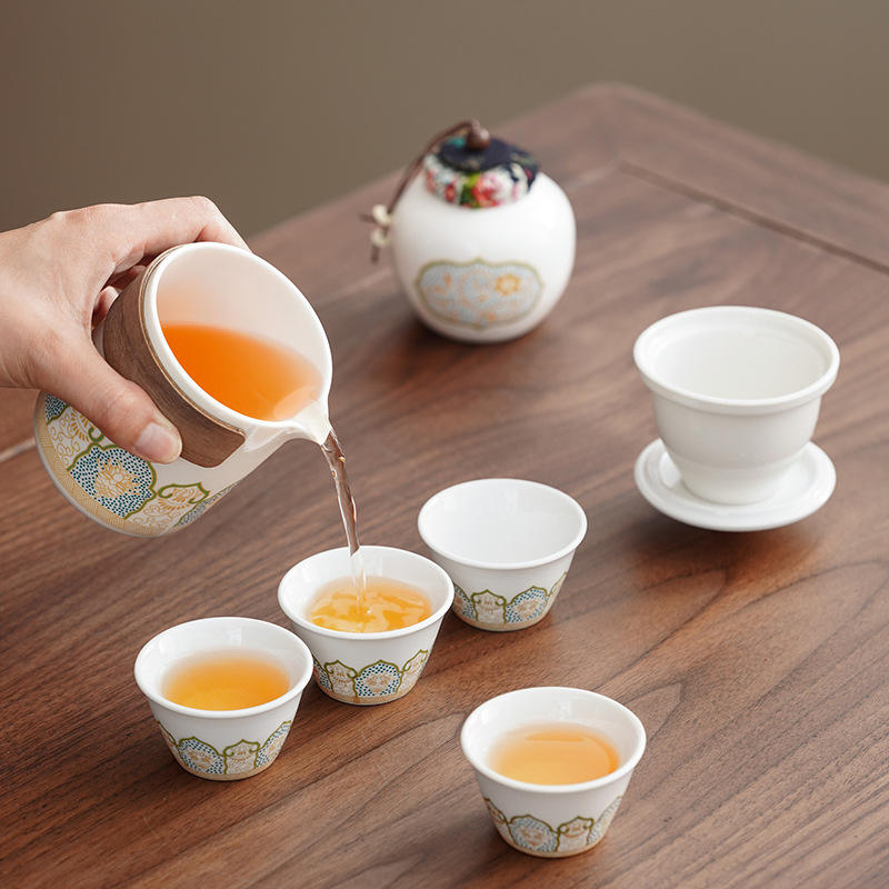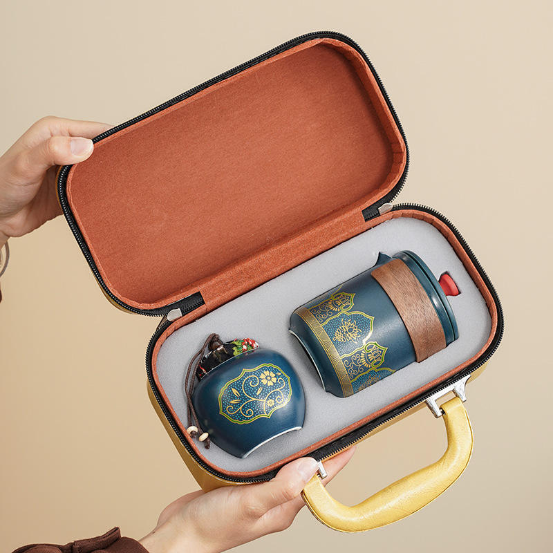 New Chinese Style Dehua Ceramic Portable Travel Tea Set Camping Quick Cup Kung Fu Leather Bag Packaging Business Gift