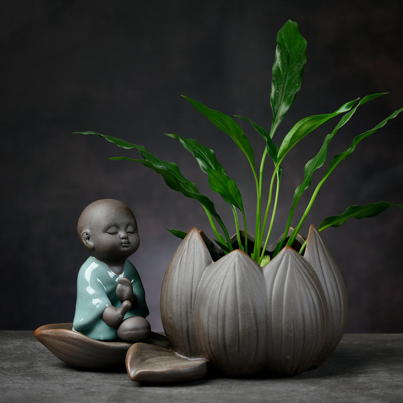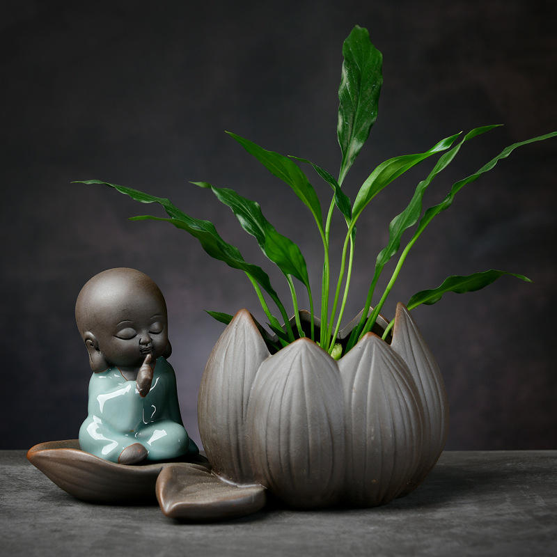 Nuovo sistema idroponico cinese Zen verde alloro Coppersia bambù e vaso di legno viola vaso di fiori di sabbia vaso decorativo in ceramica