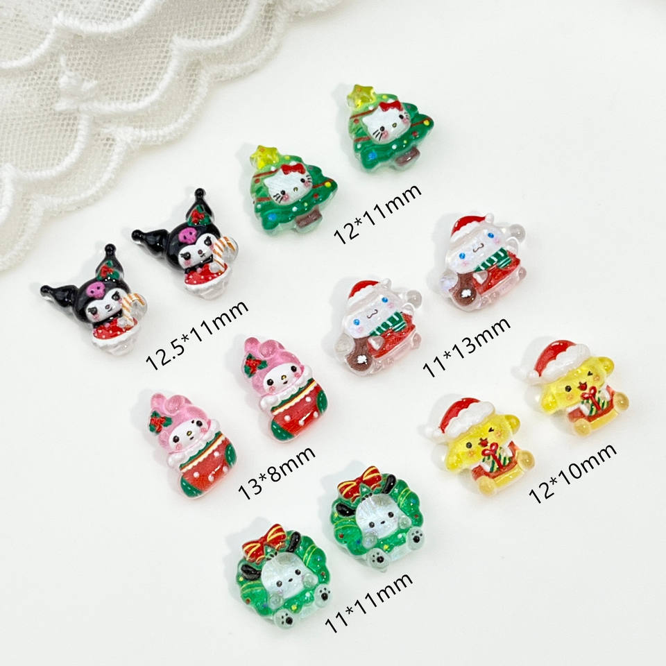 New Christmas Cartoon Christmas Nail Accessories Cute 3D Flatback Cat Kuromi Nail Decoration