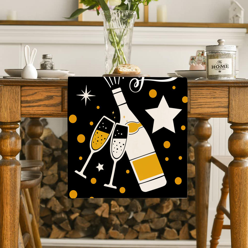 New Christmas Table Runner Black and Gold Happy Year Linen Home Party Decoration Kitchen