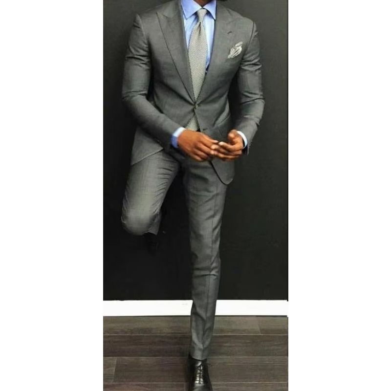 New Classic Design Groom Tuxedos Two Buttons Light Grey Peaked Lapel Groomsmen Best Man Suit Mens Wedding Suits (Jacket+Pants)