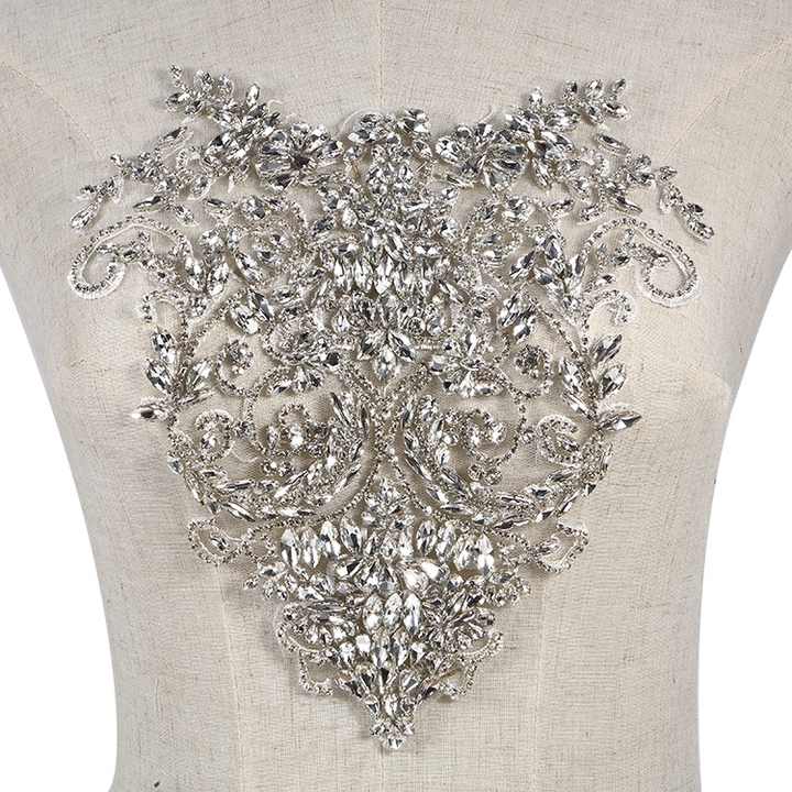 Motivo con applicazione in pizzo e strass