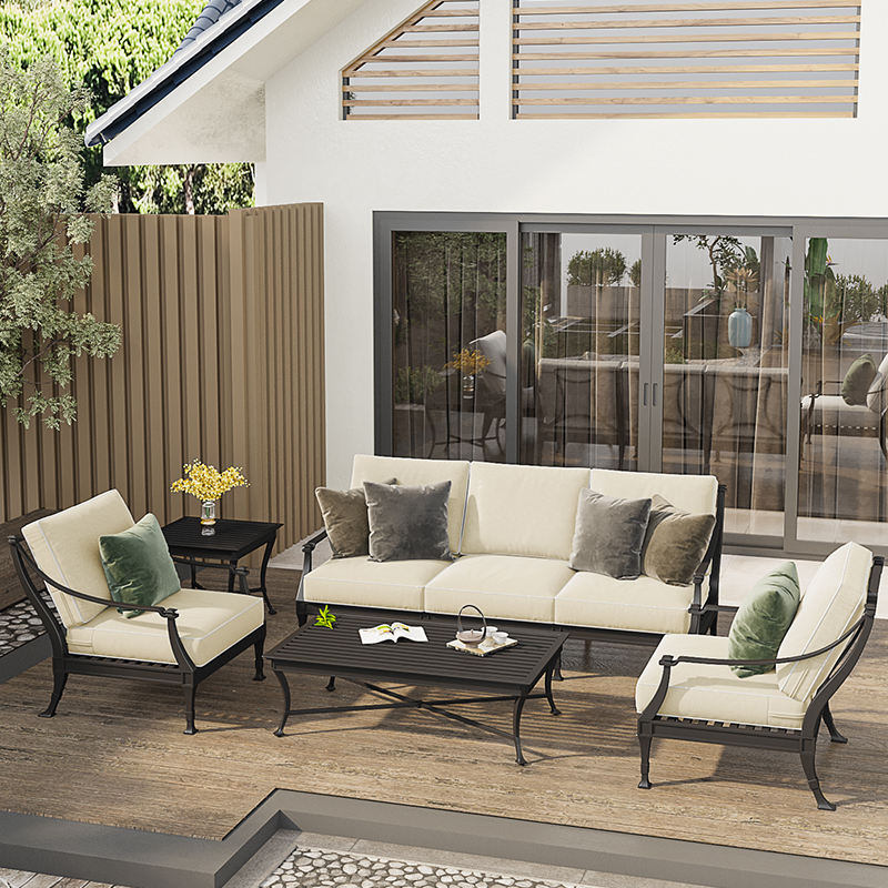 Nuova combinazione in alluminio pressofuso cortile in ferro battuto in metallo tavolo e sedia europea giardino cortile mobili da esterno in ferro divano