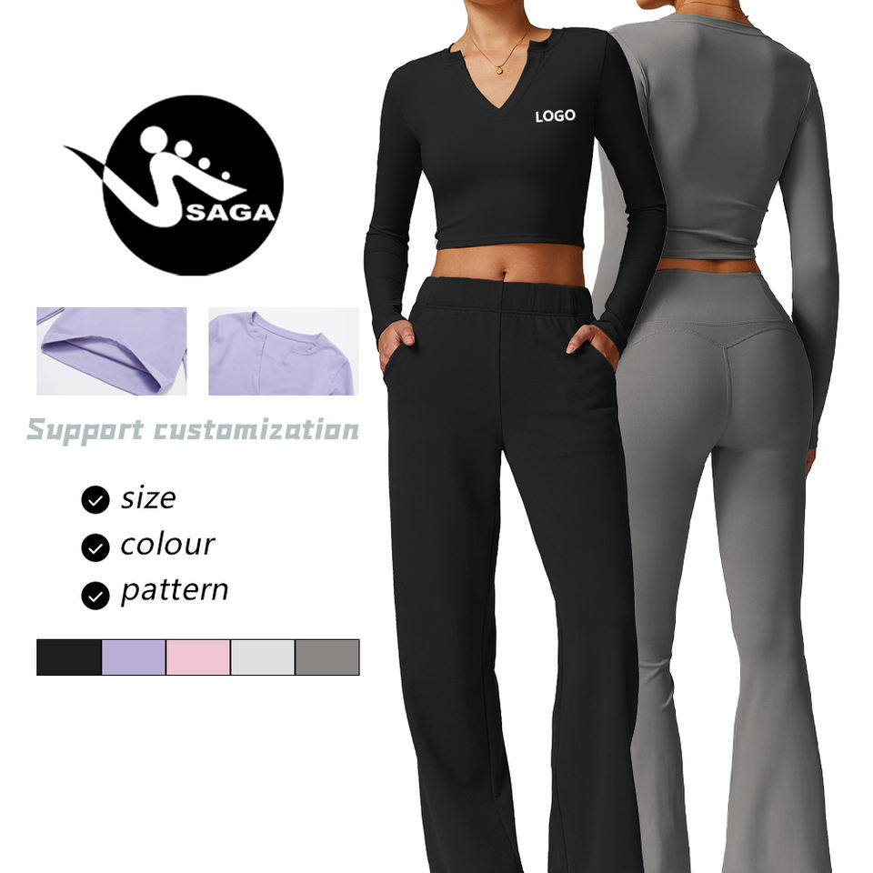 Nuova comoda e traspirante scollatura alla moda con imbottiture toraciche per costine da Yoga a manica lunga da donna