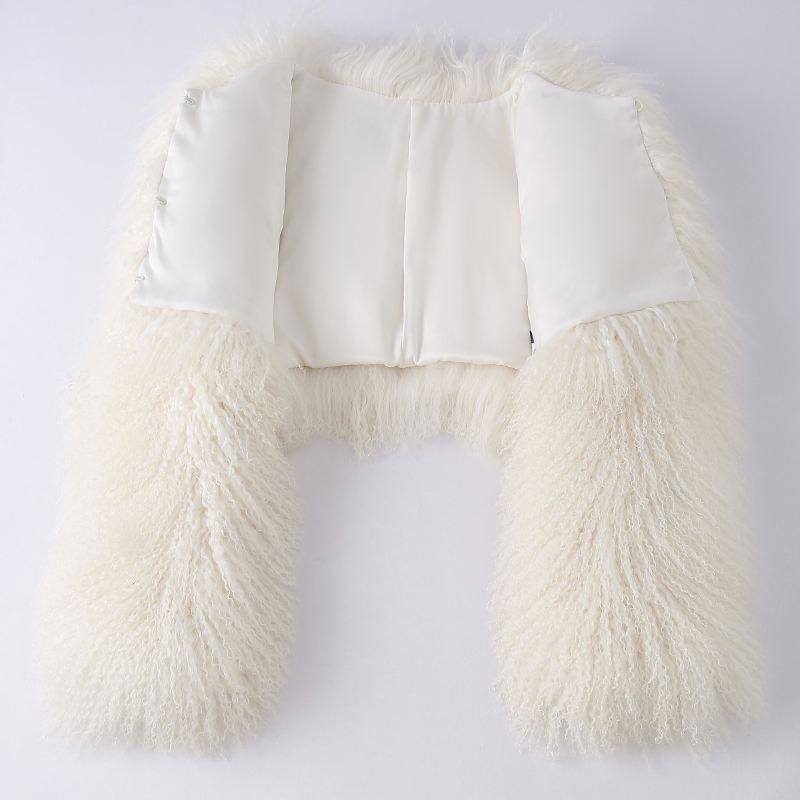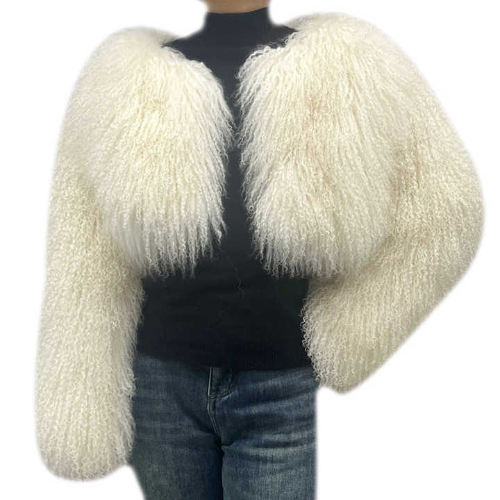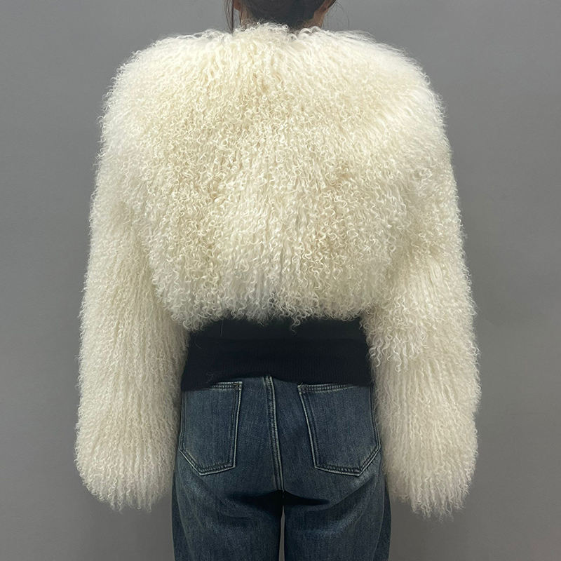 New Coming Crop Length Lamb Fur Coat Jacket Ladies Mongolian Fancy Fur Coat