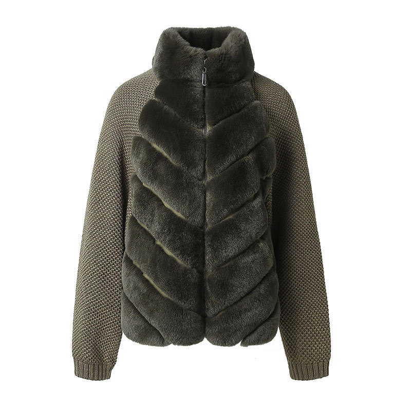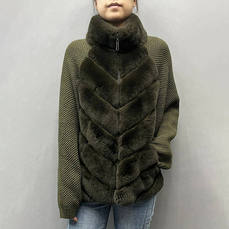Nuovo Arrivo Invernale Cappotto in Pelliccia di Coniglio Rex Morbido e Caldo con Collo Alto in Vera Pelliccia