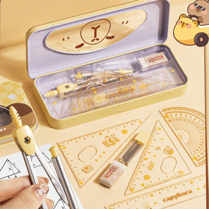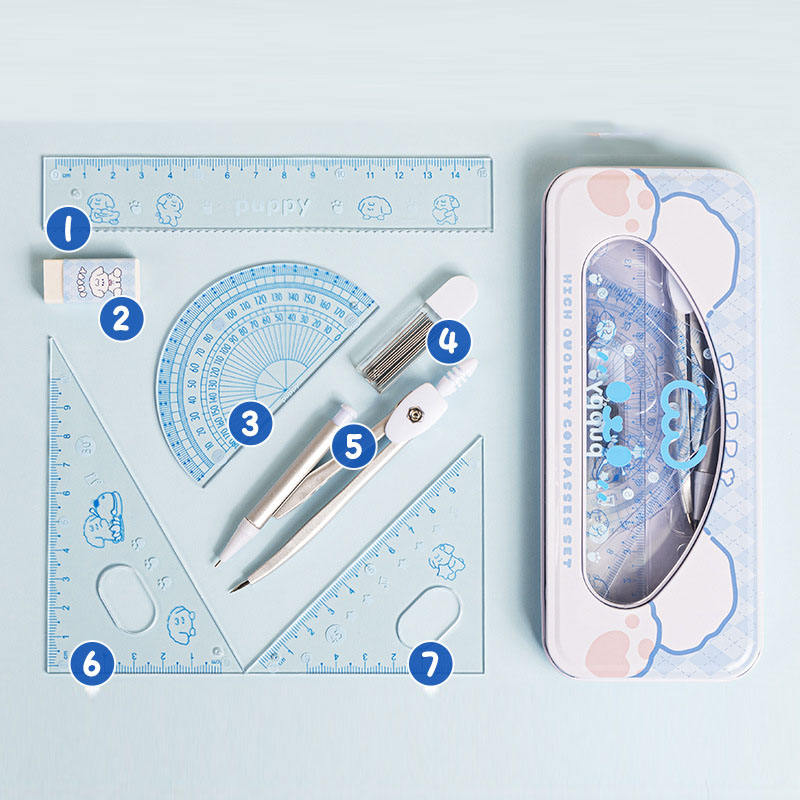 Nuovo Set di Compassi e Righelli per Esami, Righello Dritto, Compasso Triangolare, Set da 7 Pezzi con Goniometro e Righelli per Matematica e Geometria
