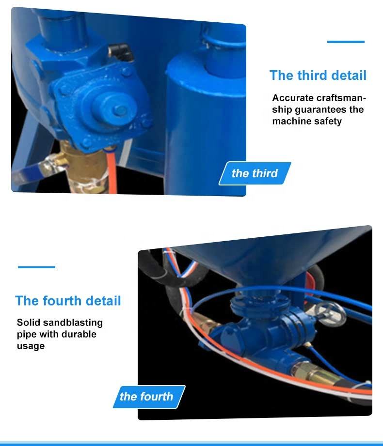 Consumo d'aria: Con un consumo d'aria di 3,6 m³/min o più, questa macchina per il sabbiatura garantisce un funzionamento efficiente e continuo per progetti su larga scala.