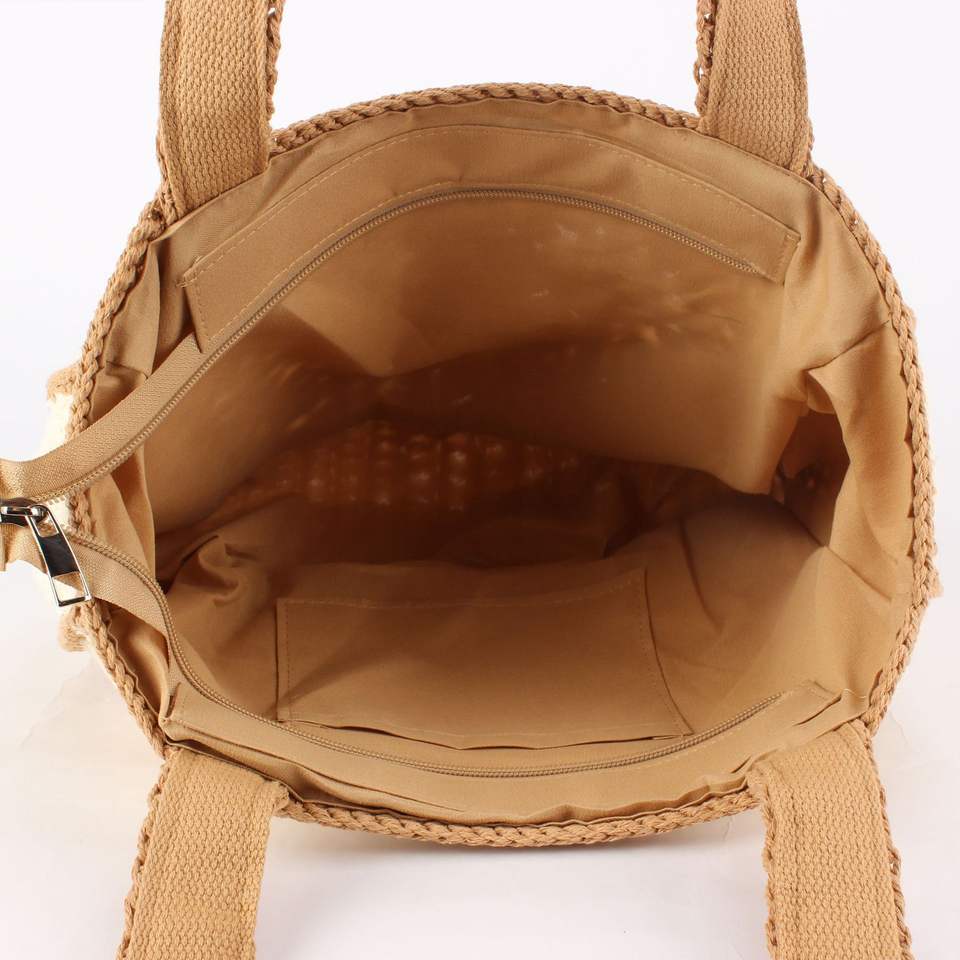 Nuova Borsa Intrecciata a Mano in Cotone con Chiusura a Cerniera Media in Poliestere per Donne, Ideale per Spiaggia, Vacanze e Pendolarismo