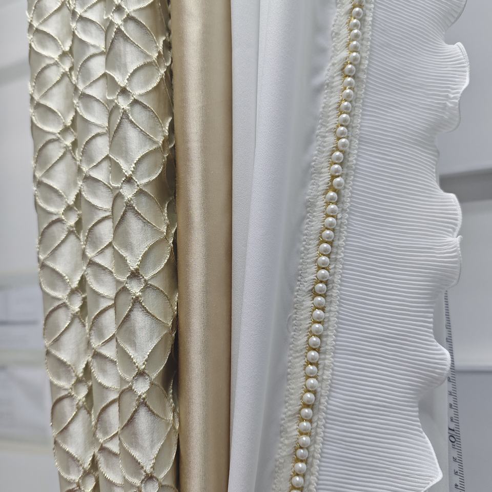 Nuove Tende Oscuranti di Lusso in Jacquard Crema con Ricami e Pizzo per Soggiorno