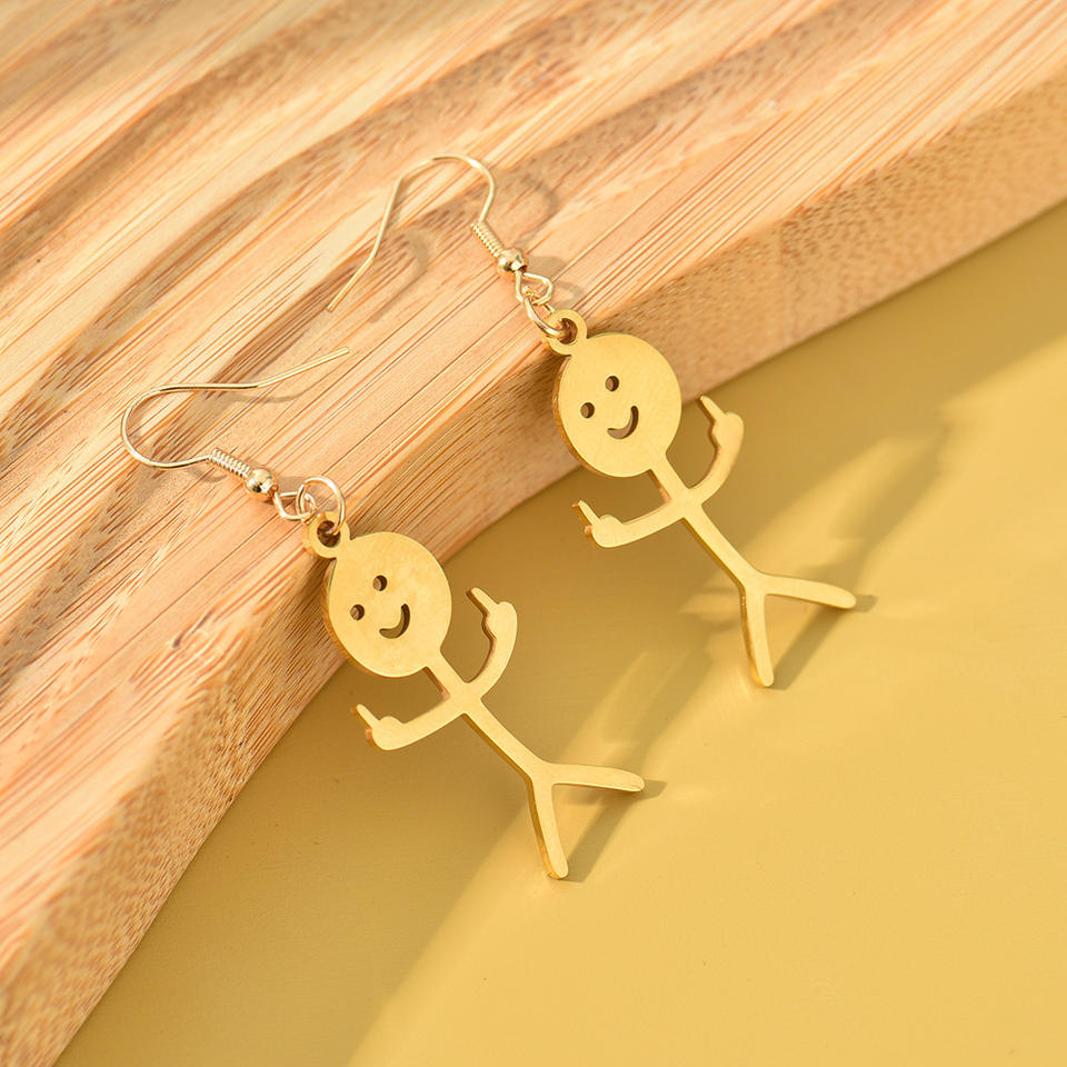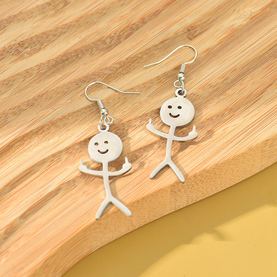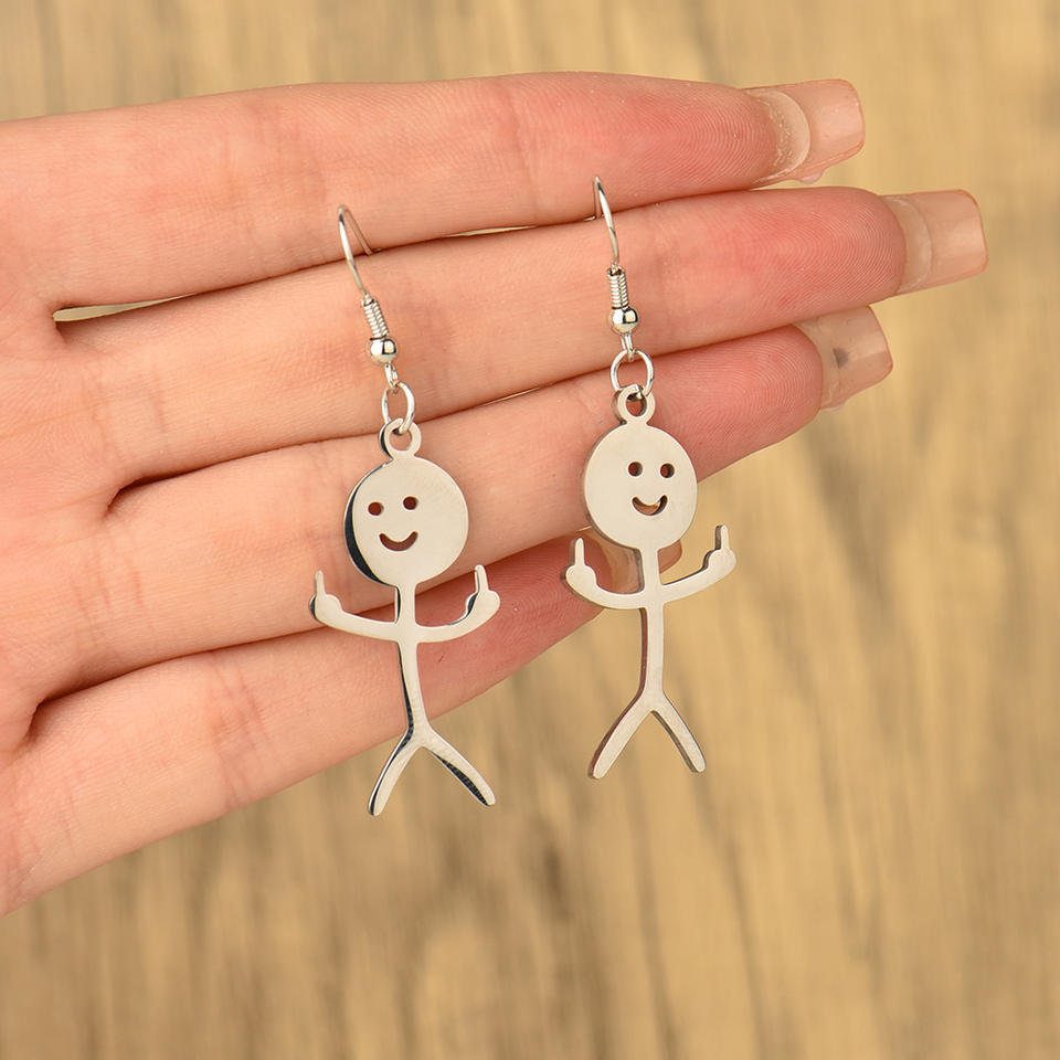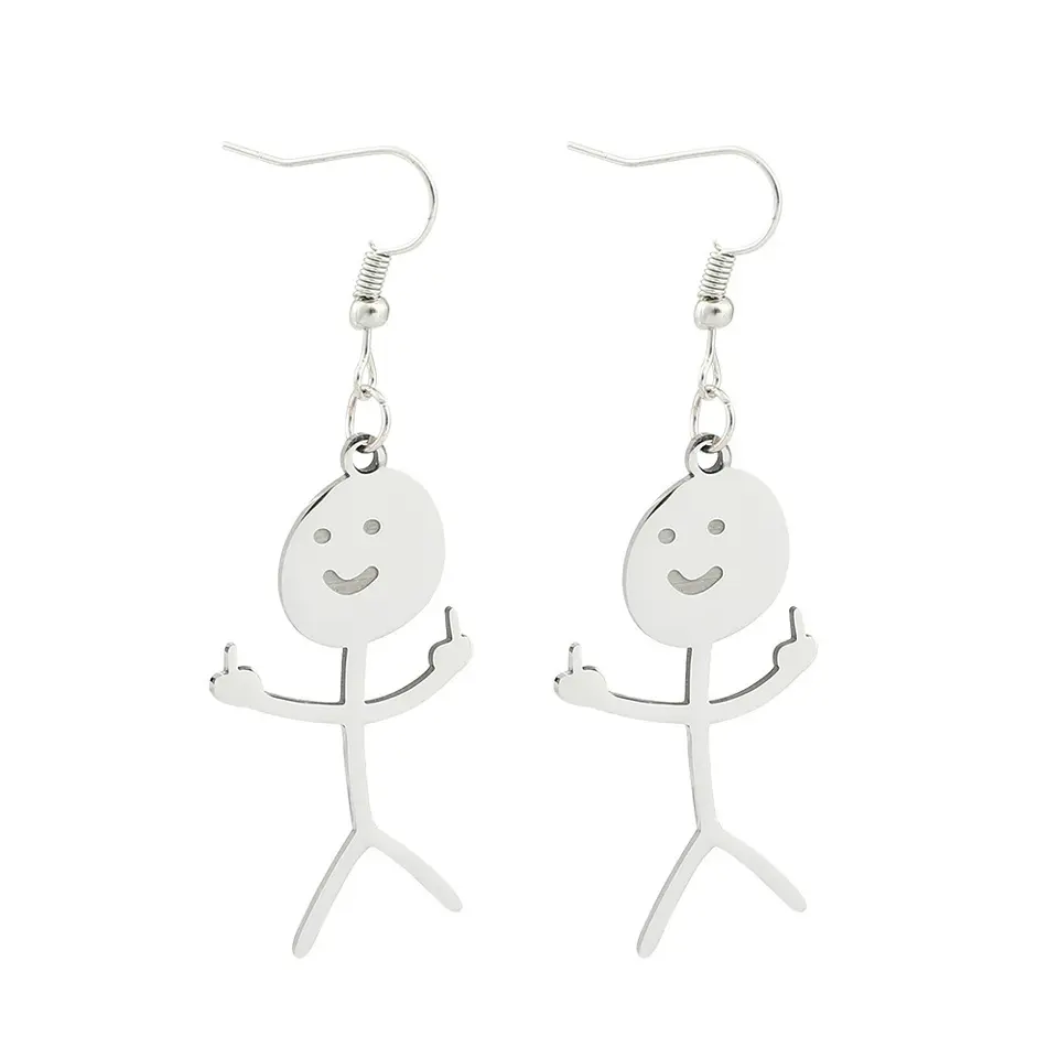 Nuovi Orecchini Creativi a Forma di Graffiti con Personaggi, Divertenti Orecchini a Dito Medio in Acciaio Inossidabile per Uomini e Donne