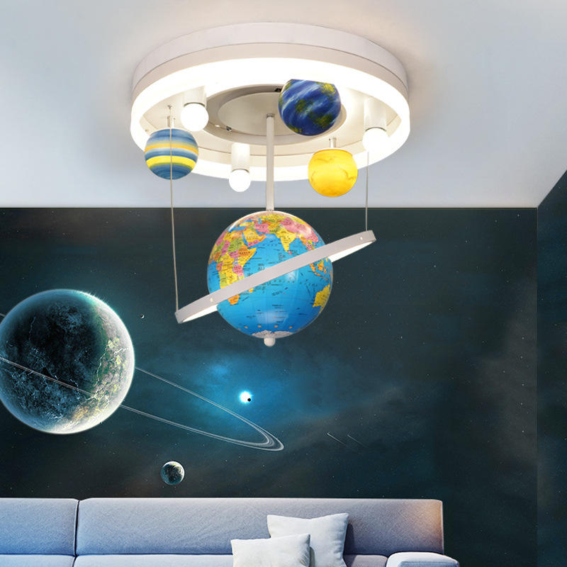New Creative Kid Boys and Girl Study Children Star Lamps Light Rotating Earth Planet Globe Chandelier for Kids Bedroom