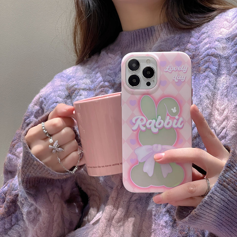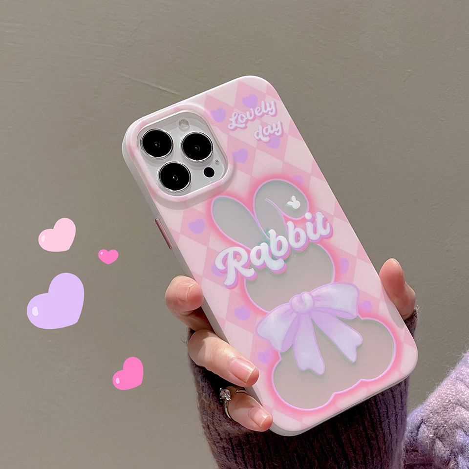 New Creative Laser Rhombus Bow Pink Rabbit Case for iphone 11 12 13 14 Pro Max Soft Cute Phone Cover