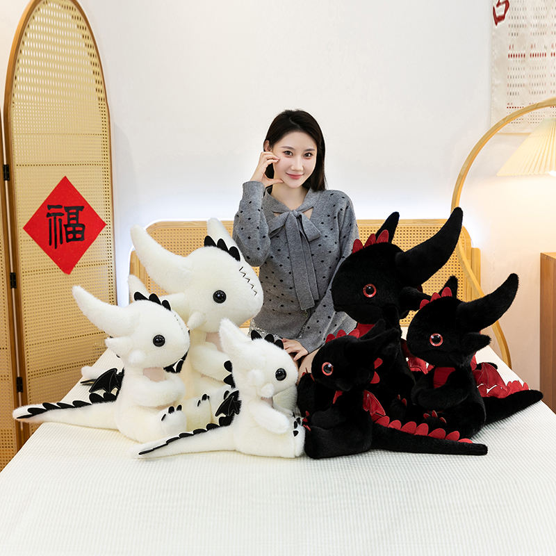 Nuovo Creativo Peluche Drago Volante Piccolo, Bambola Bianca e Nera, Cuscino Decorativo, Regalo, Giocattolo Animale Imbottito a Forma di Drago