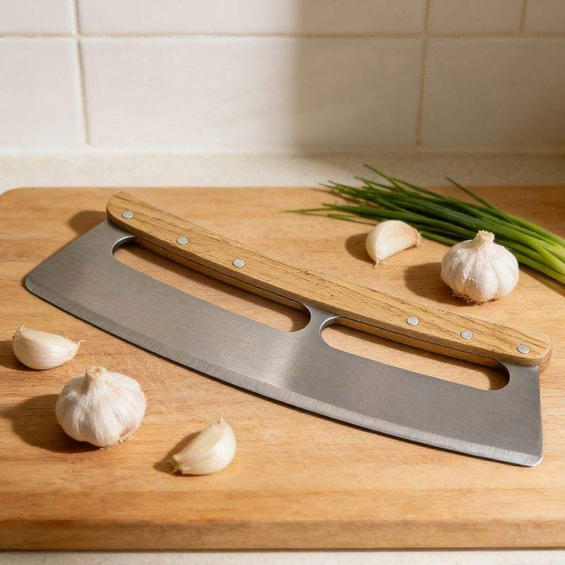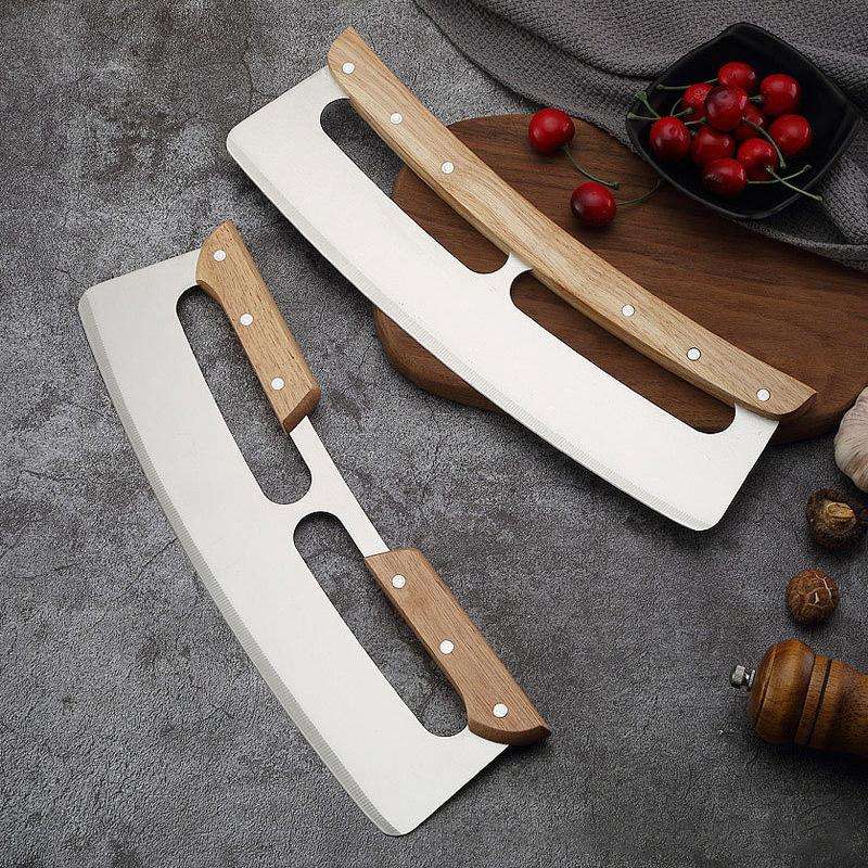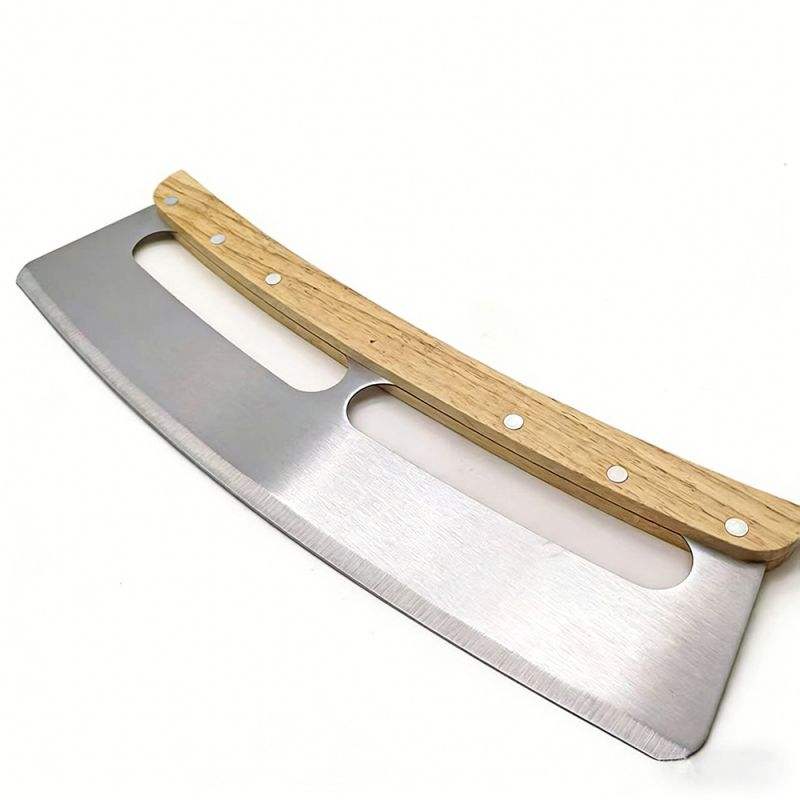Nuovo creativo tagliapizza Rocker con due manici in legno e copertura protettiva nera