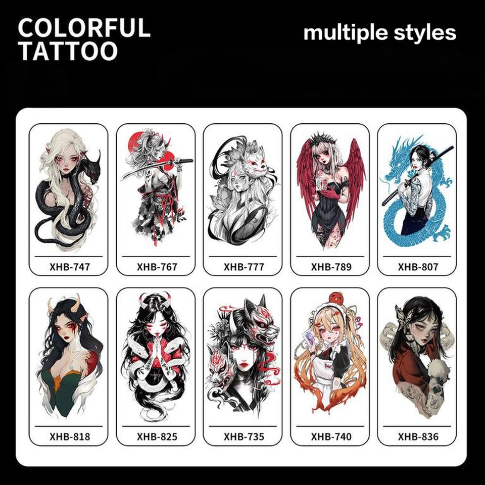 Nuovi Adesivi per Tatuaggi Temporanei Colorati a Mezza Mano, Anime Geisha, Impermeabili, Usa e Getta, Tatuaggi Stampati a Trasferimento d'Acqua