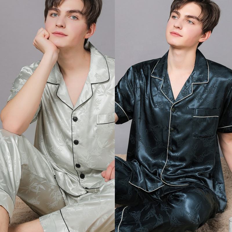 Nuovo Pigiama da Uomo Personalizzato con Bottoni in Raso di Seta, Abbigliamento da Casa e da Notte