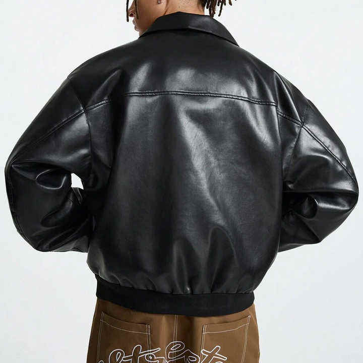 New Custom High Quality PU Leather Printed Cropped Street Chenille Embroidered Turn-down Collar Men's Bomber Jacket